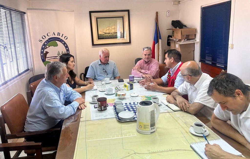 En la reunión de trabajo participaron la seremi de Agricultura, Pamela Gatti, junto al director regional de CONAF, Esteban Krause; presidente de Socabio, Jose Miguel Stegmeier y representantes de la empresa CMPC.