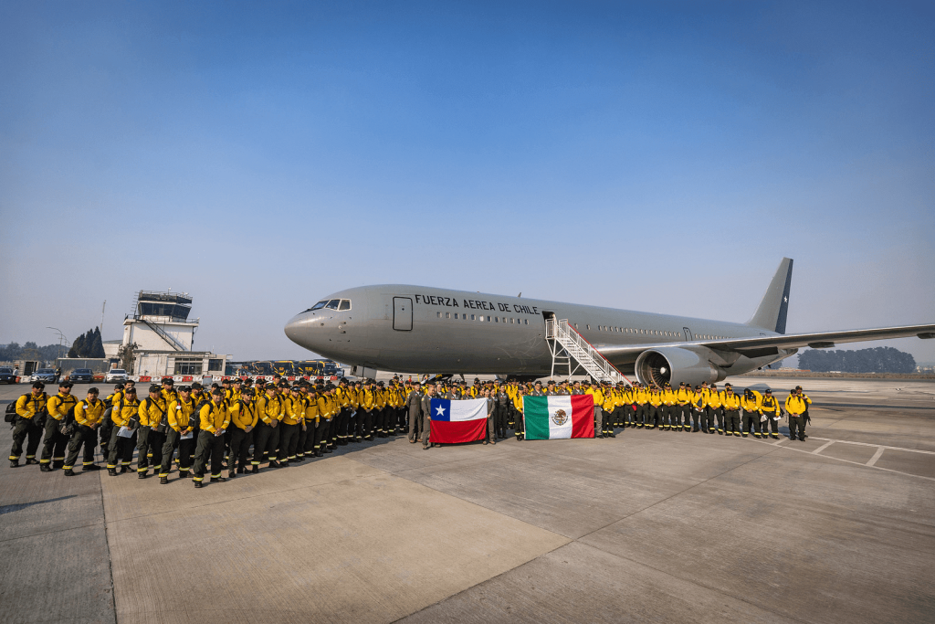 El contingente proveniente de México está compuesto por 145 brigadistas especializados de la Comisión Nacional Forestal (CONAFOR) y de la Secretaría de la Defensa Nacional (SEDENA), quienes se desplegarán en los distintos focos de incendio activos. Este equipo cuenta con formación, experiencia y estándares técnicos que permitirán reforzar las labores de combate y control del fuego. Su llegada fue posible gracias a la coordinación entre la Cancillería, el Ministerio de Defensa, la Corporación Nacional Forestal (CONAF) y la Fuerza Aérea de Chile.